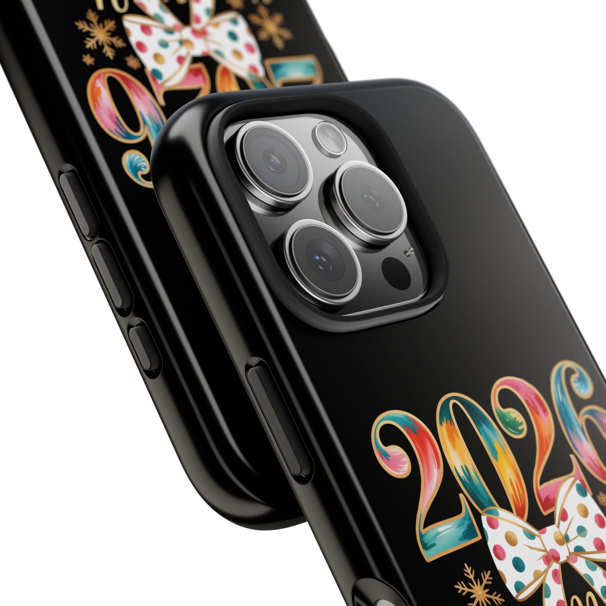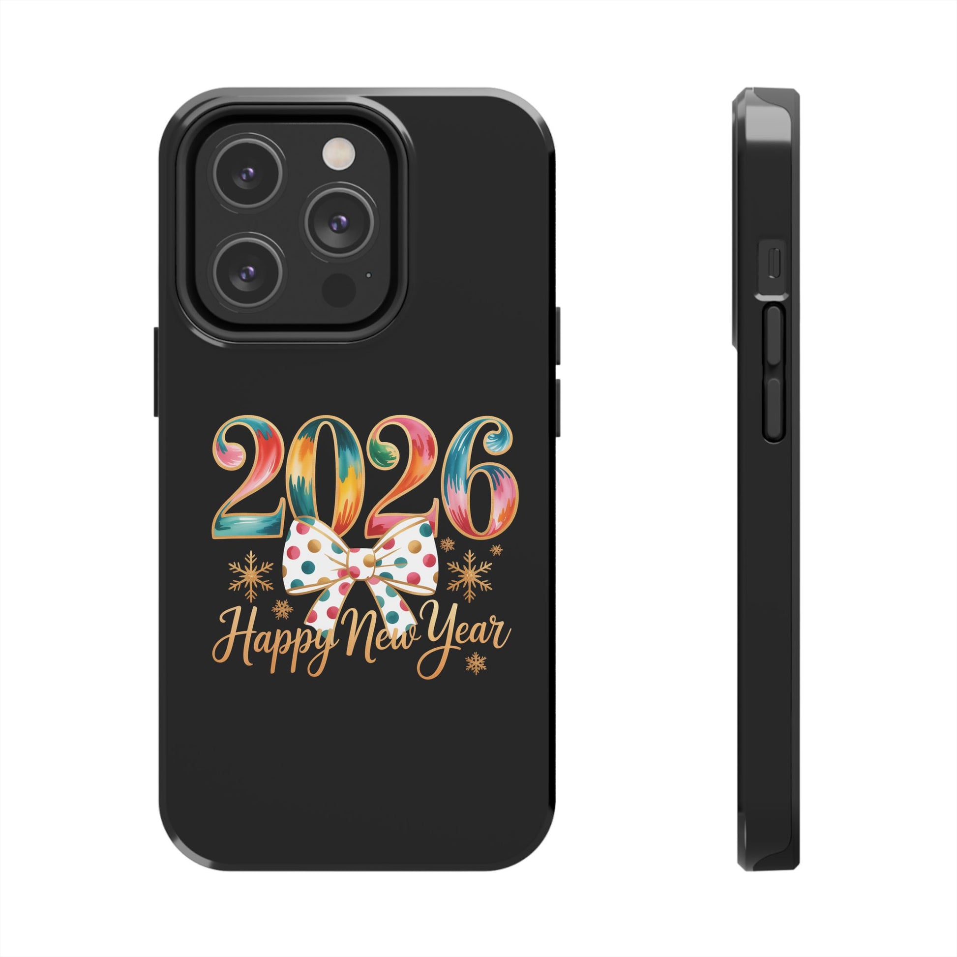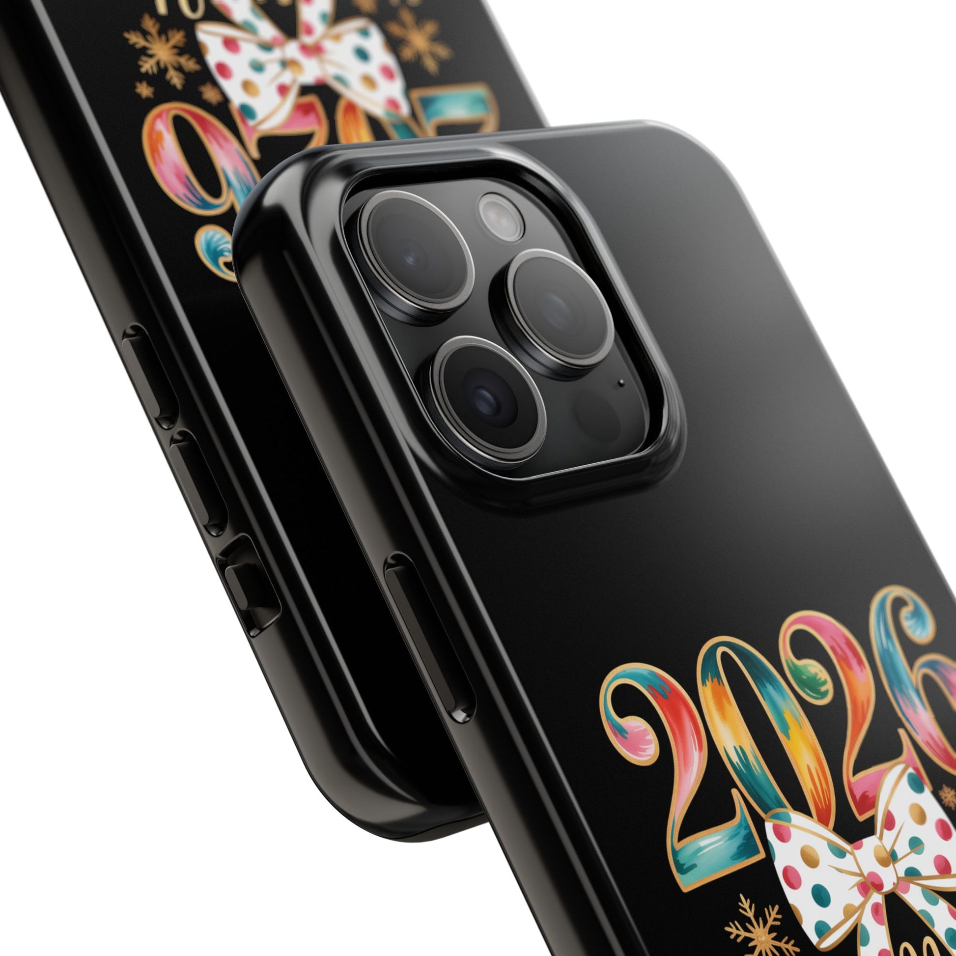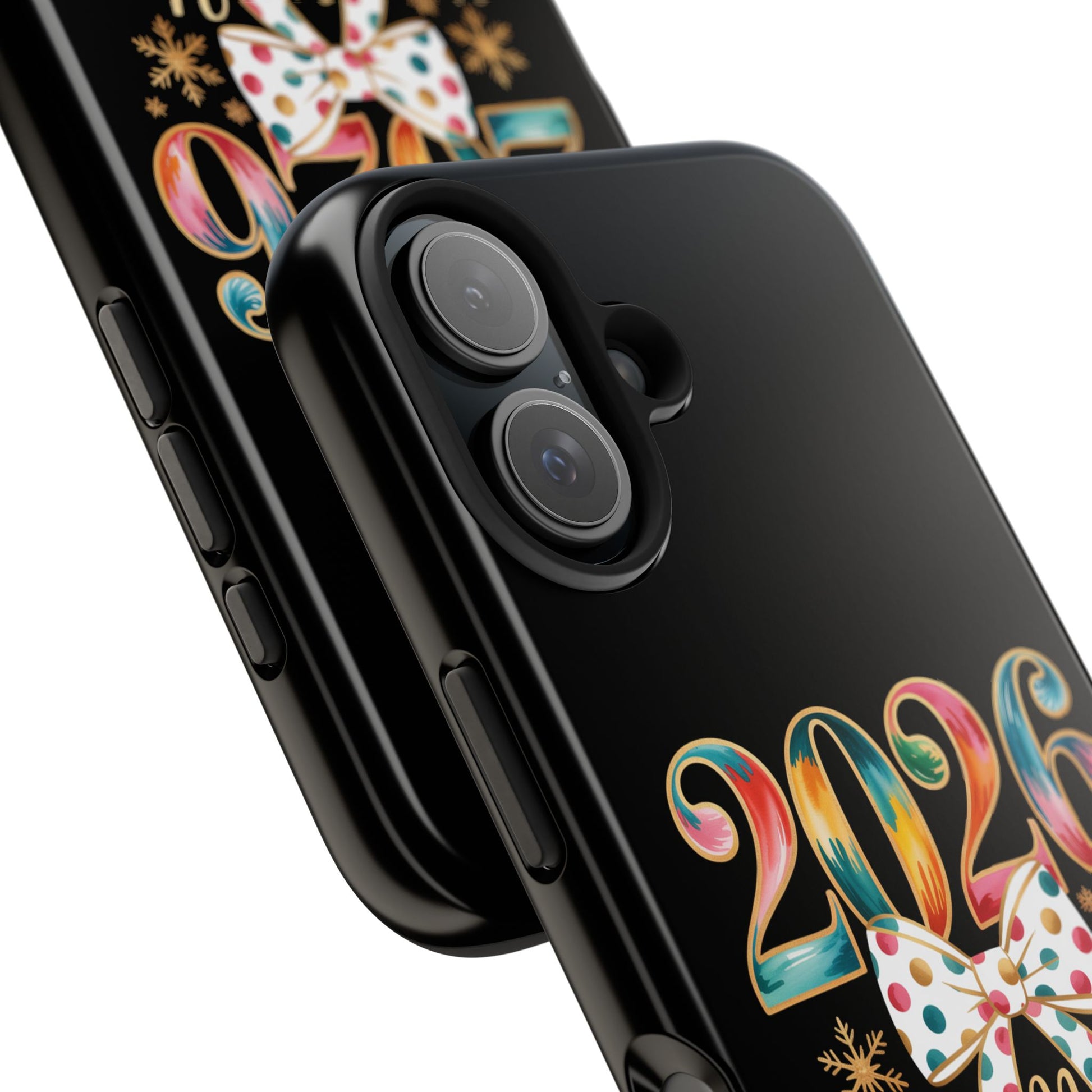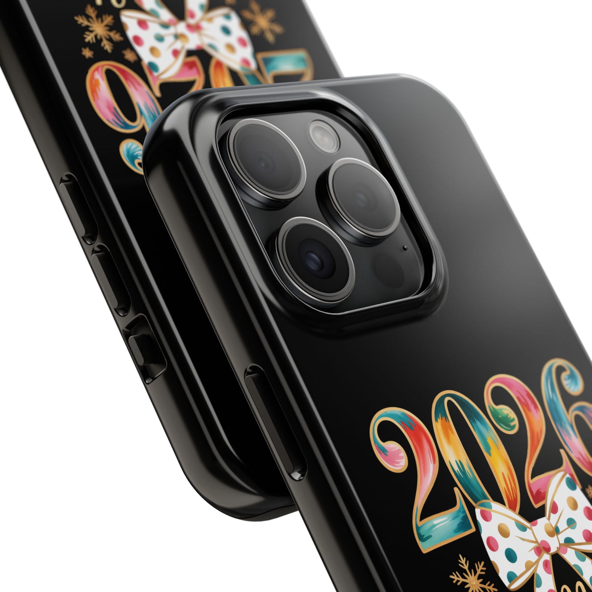 2026 Happy New Year Phone Case | Colorful Numbers, Polka Dot Bow, Sparkles