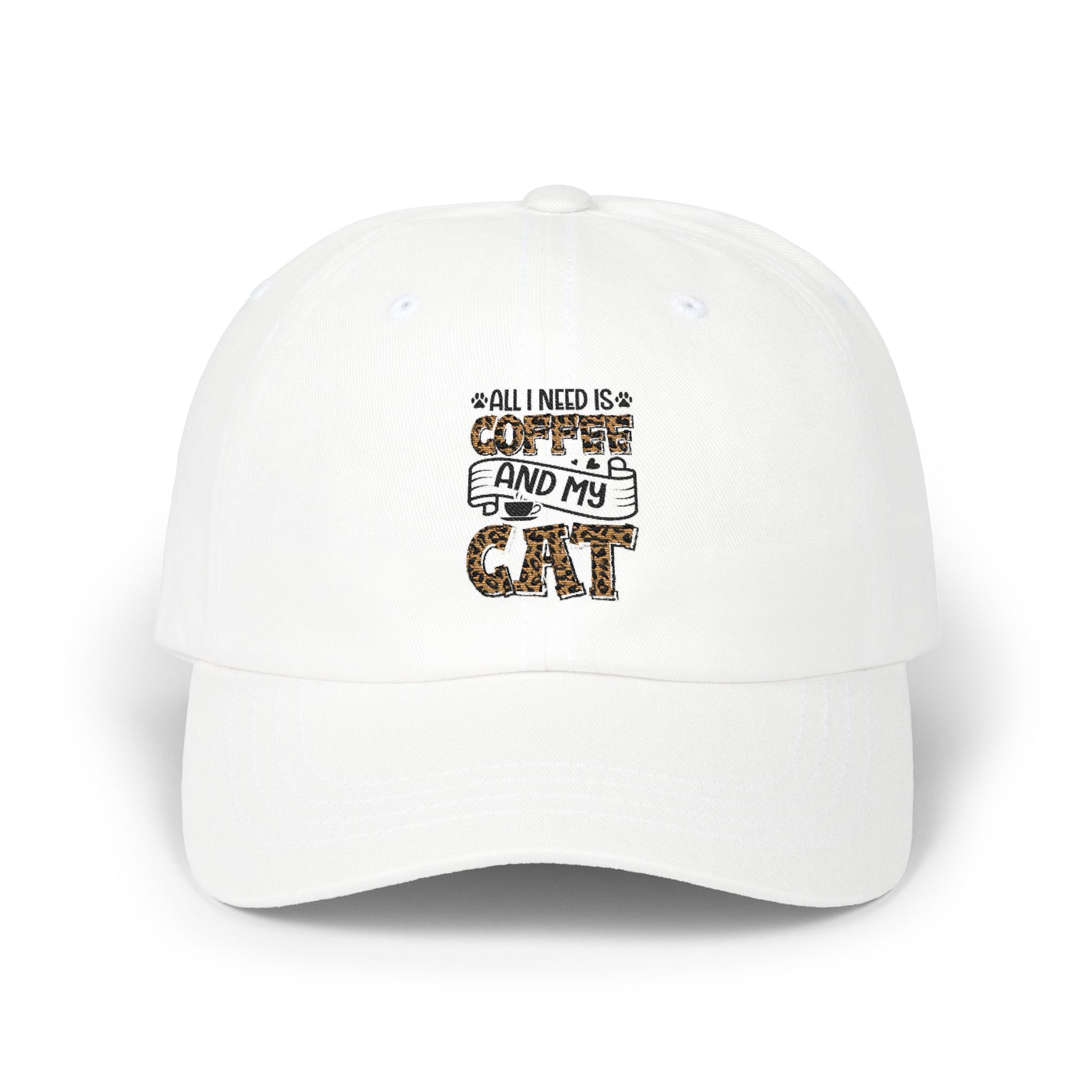 All I Need Is Coffee And My Cat Dad Cap | Leopard Text Embroidery