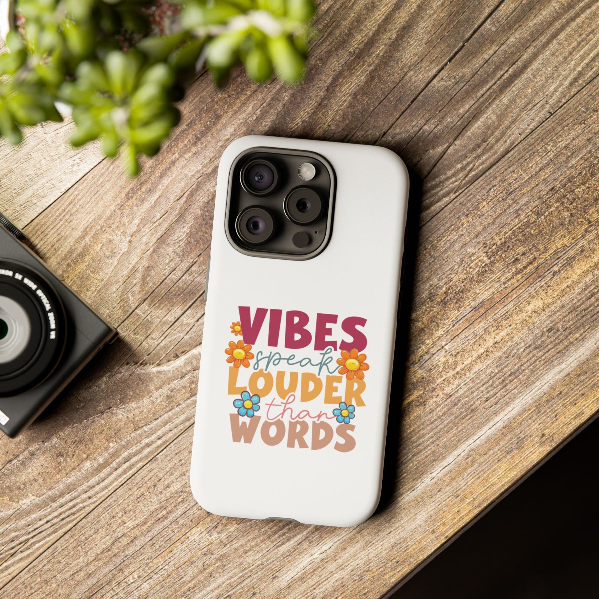 Vibes Speak Louder Than Words Phone Case | Floral Retro Typography