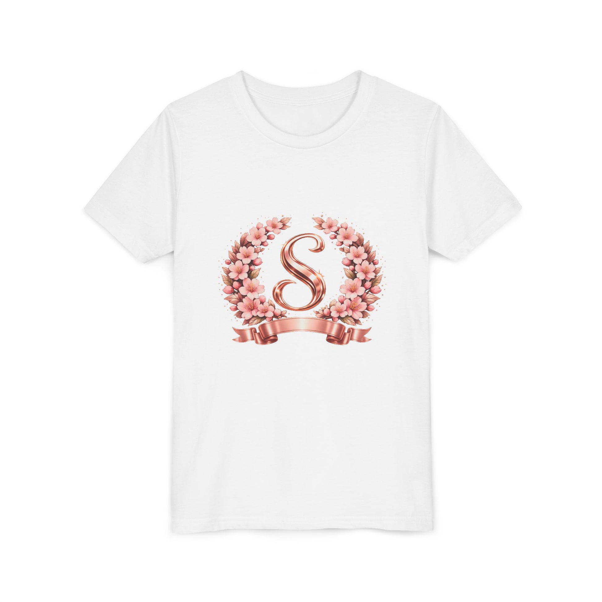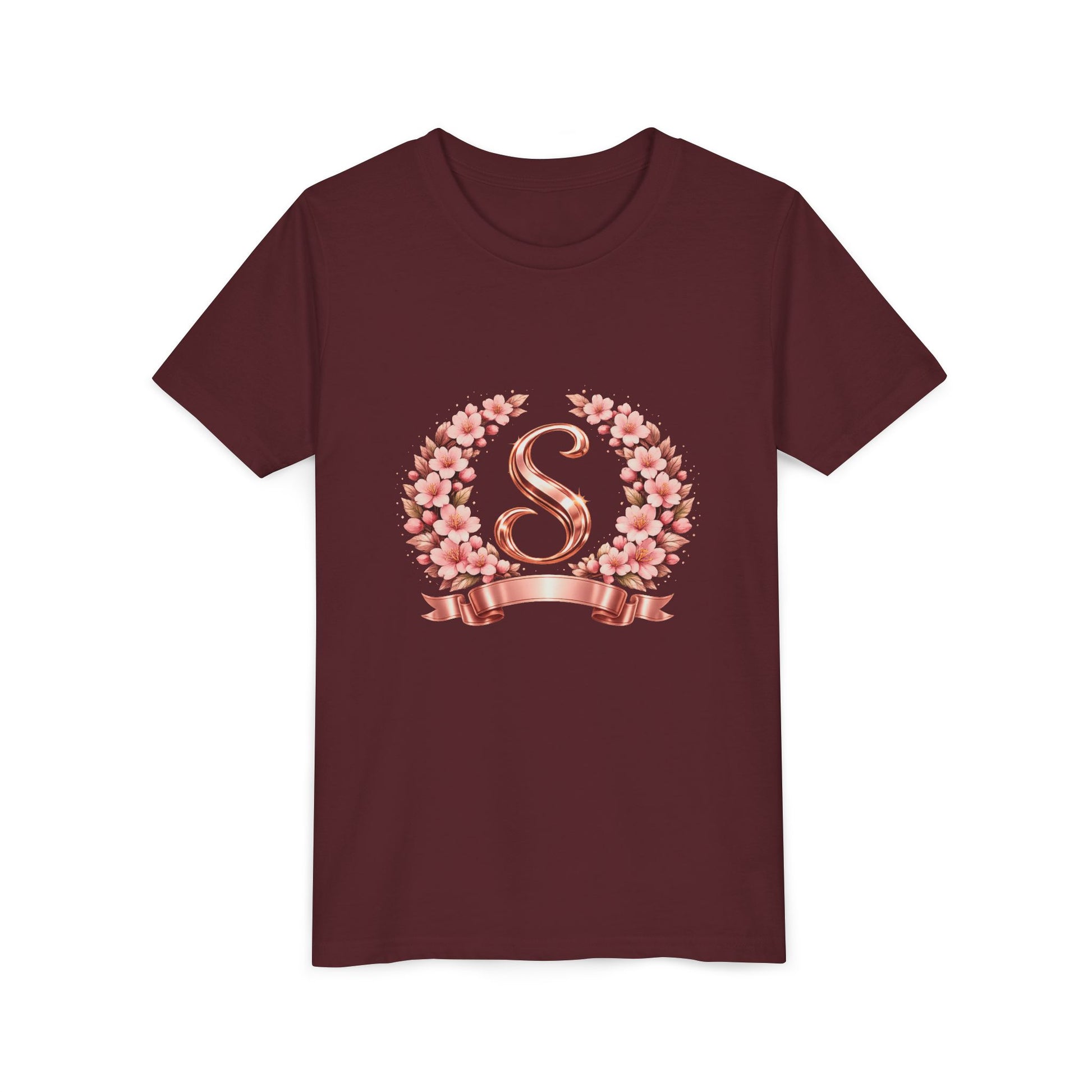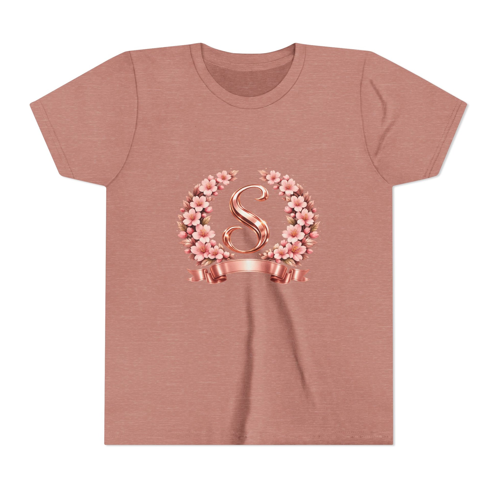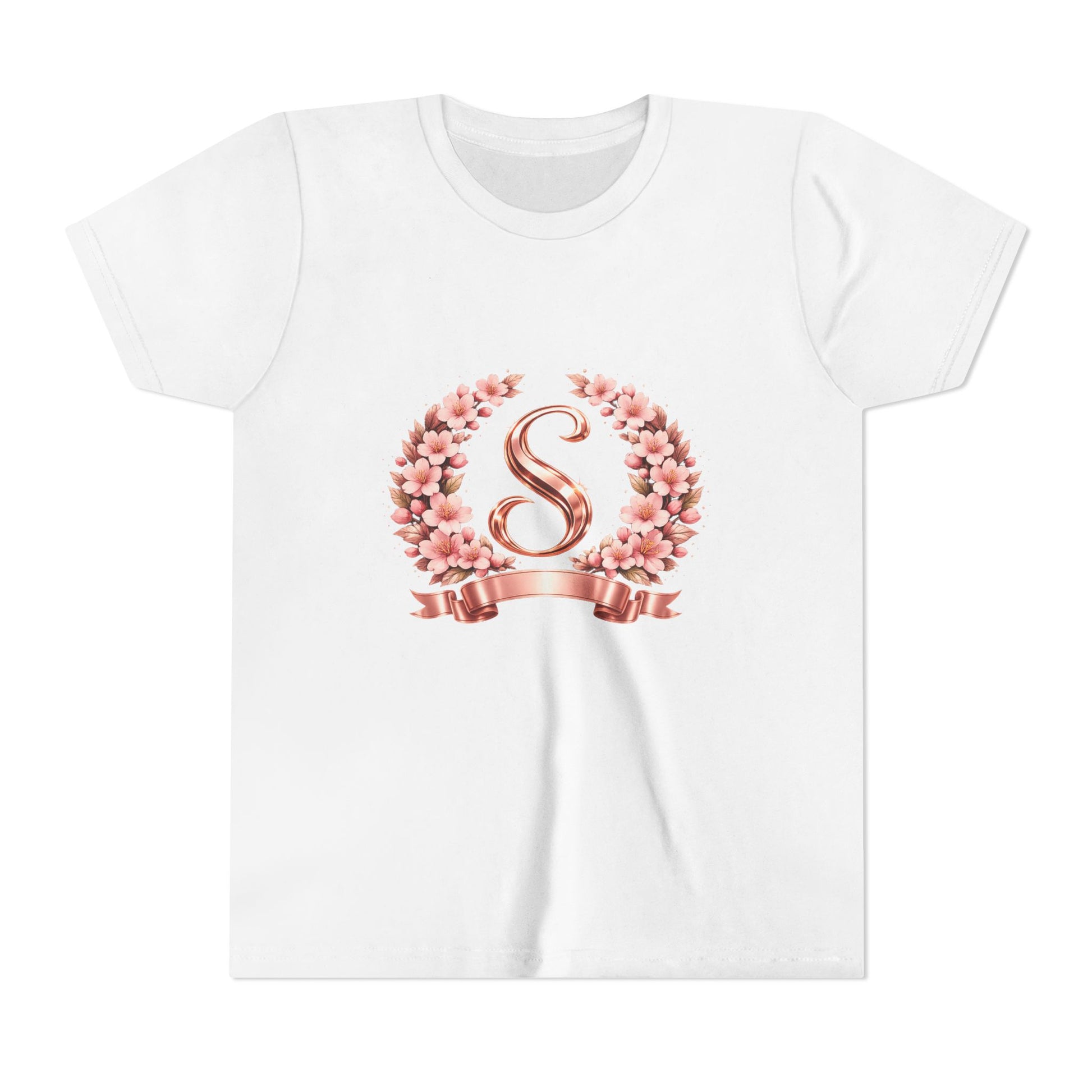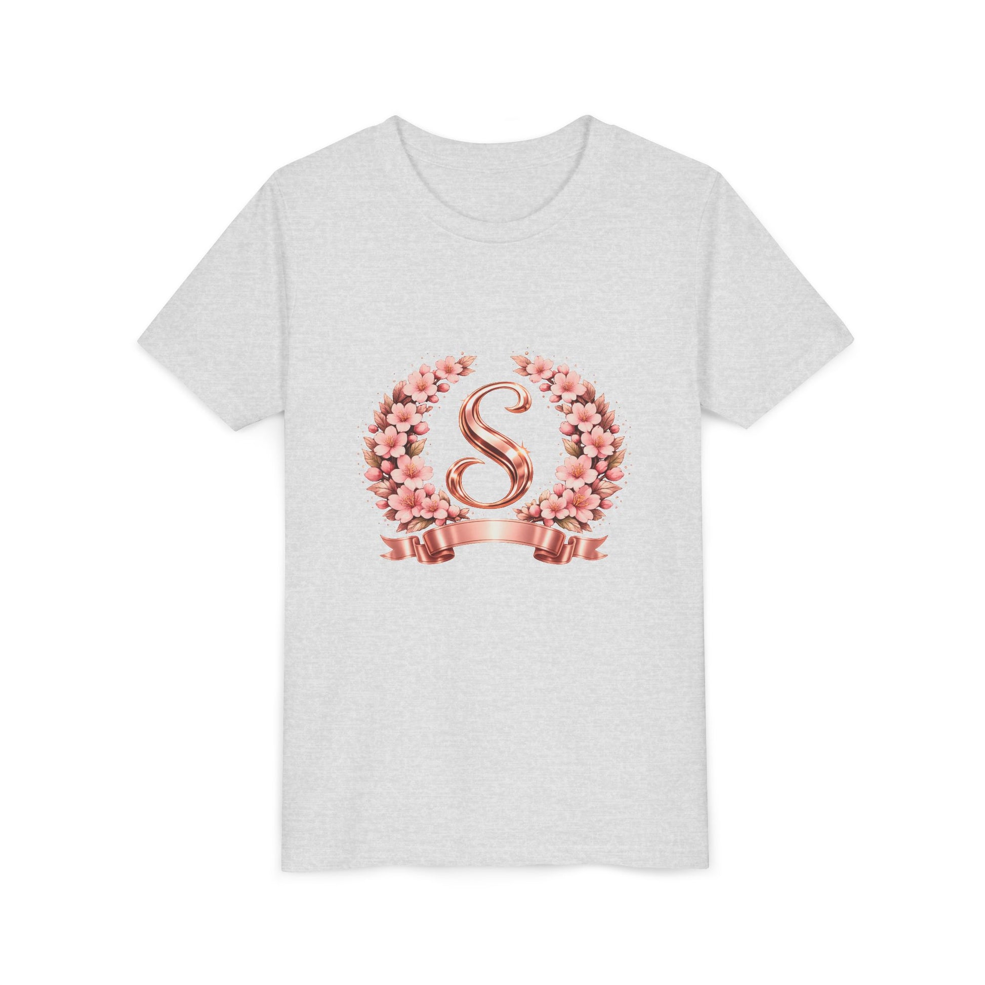Youth Tee — Rose Gold Floral Monogram 'S' Shirt