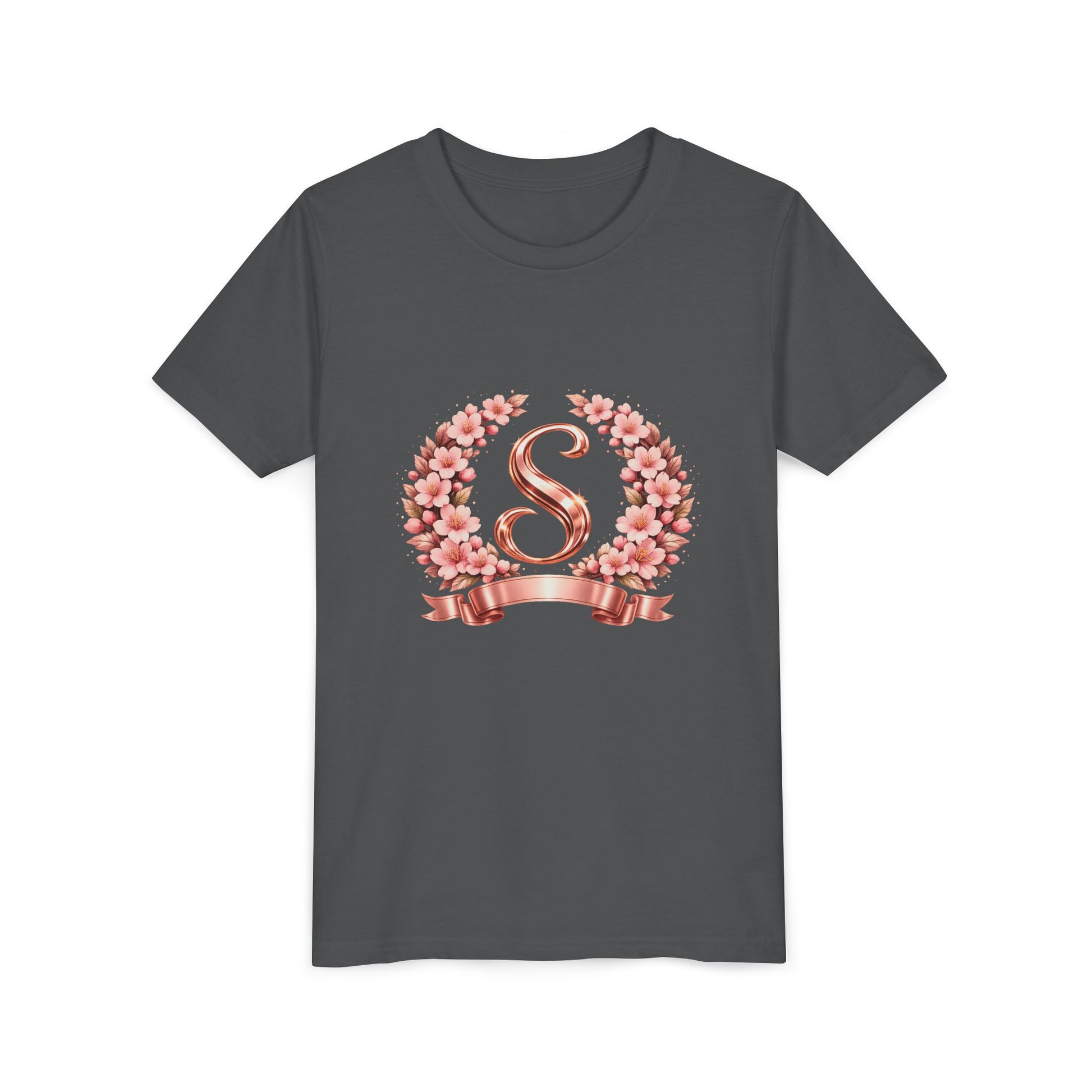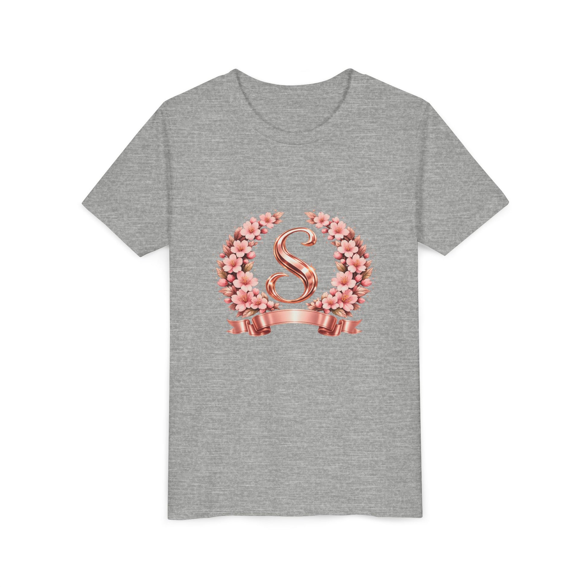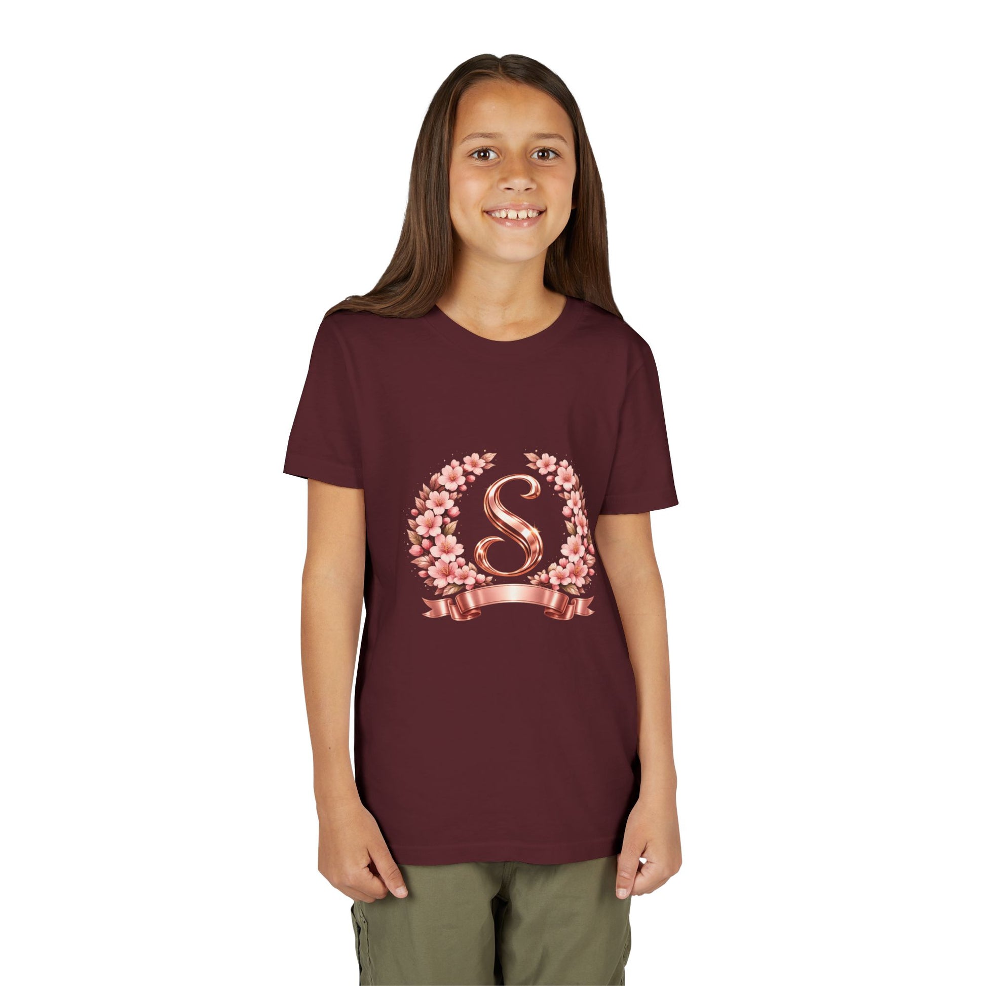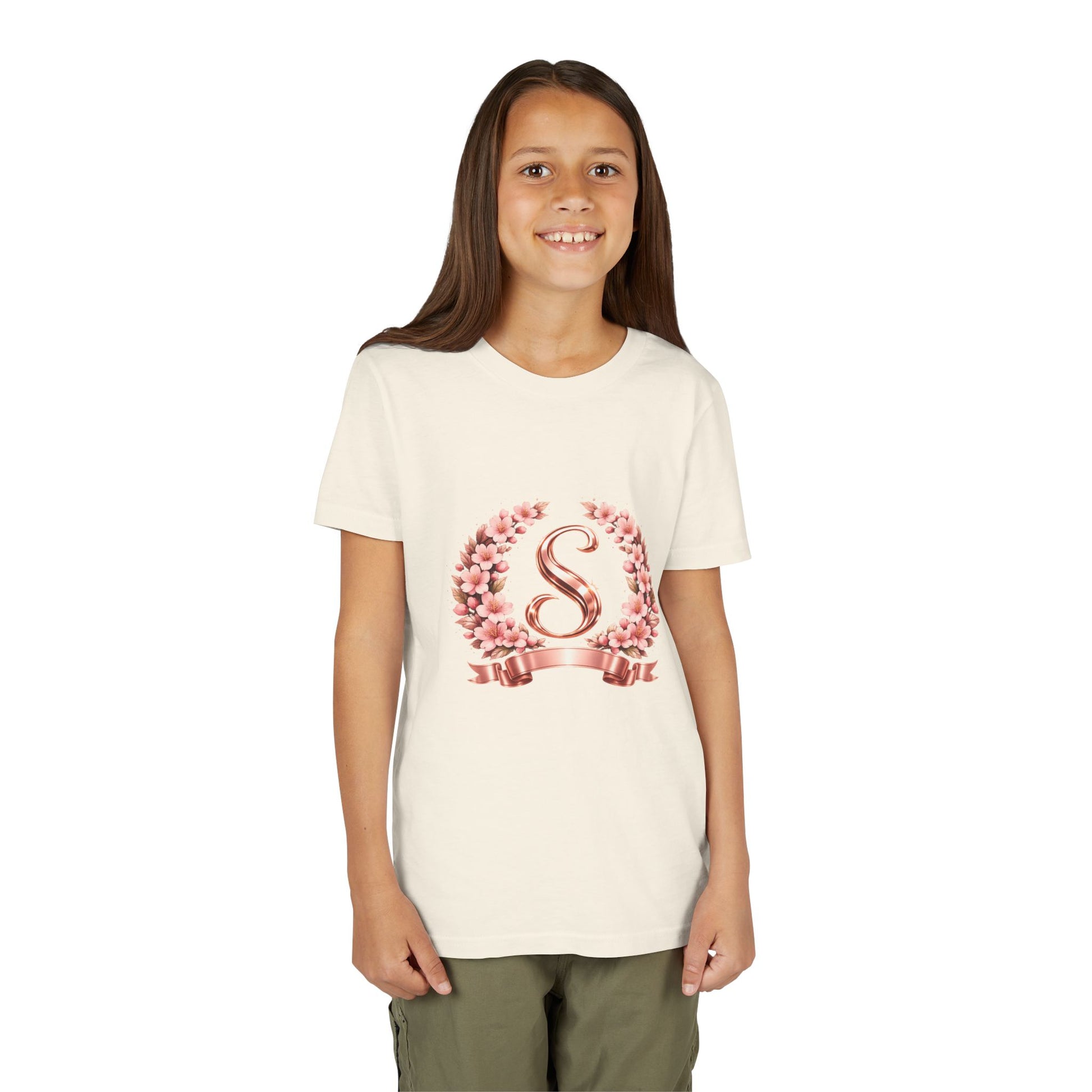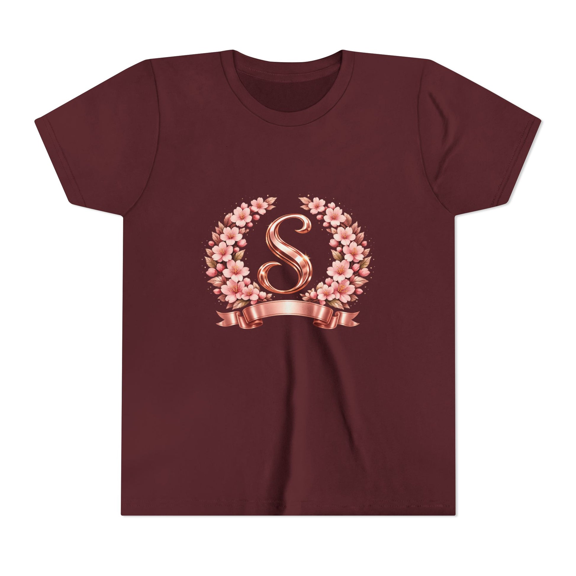 Youth Tee — Rose Gold Floral Monogram 'S' Shirt