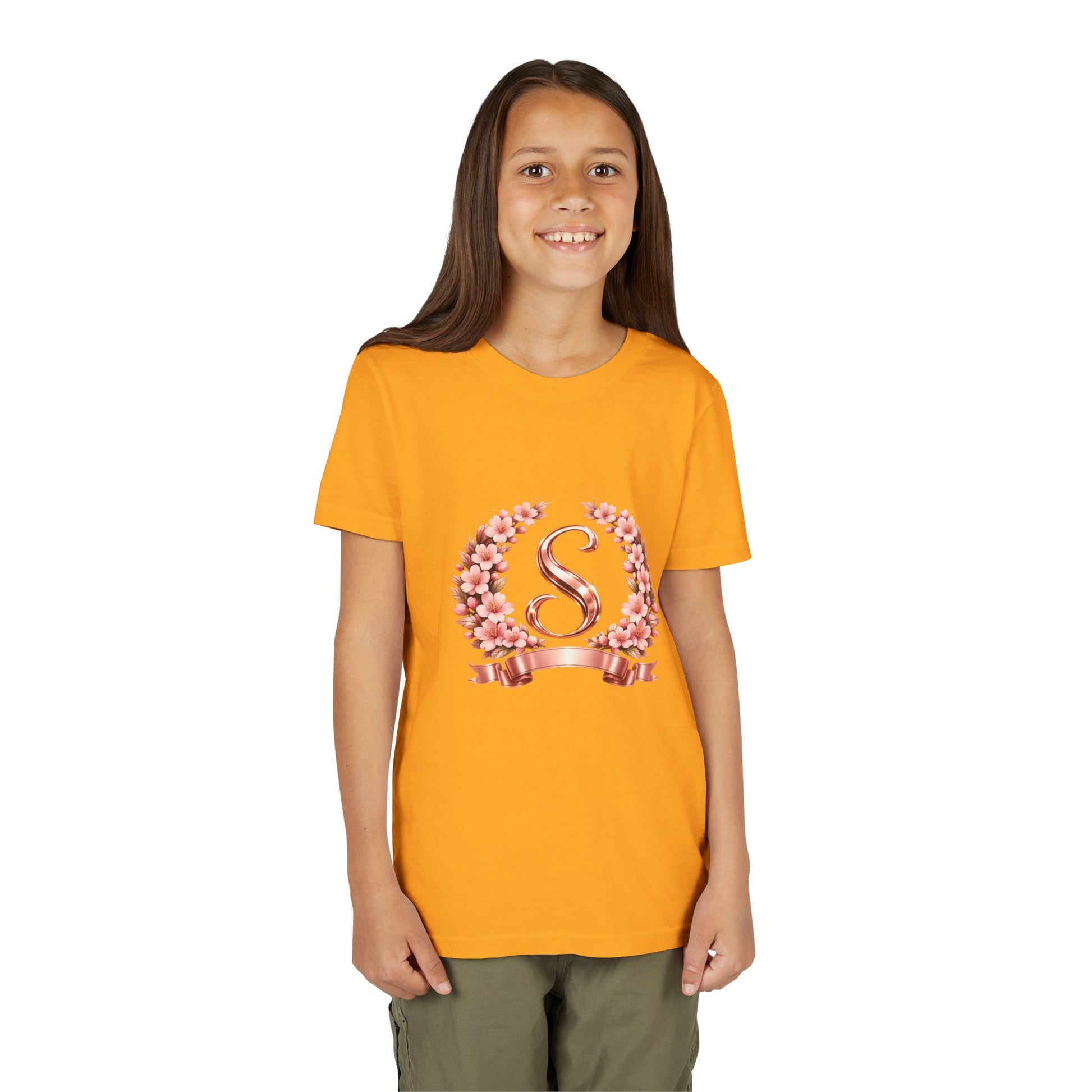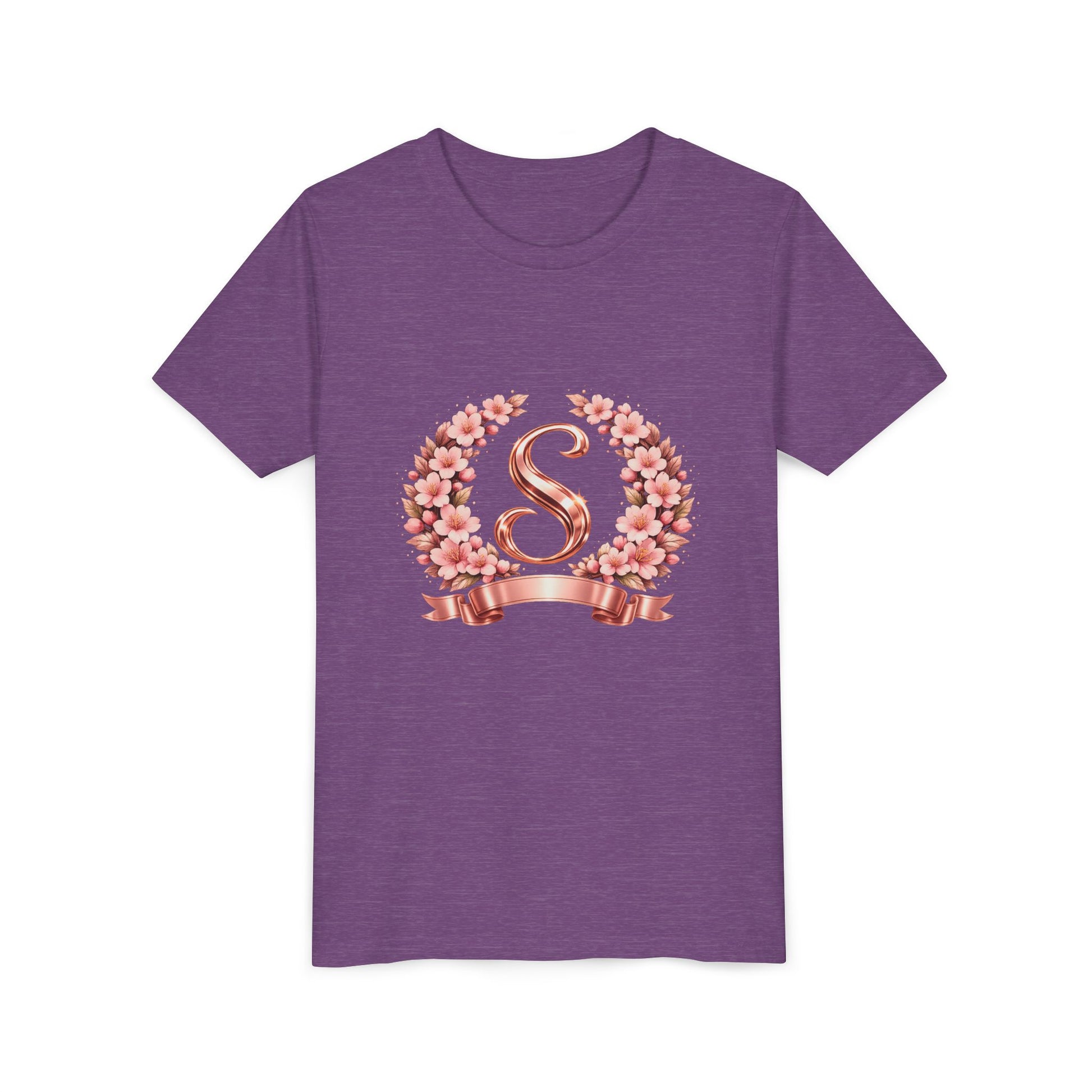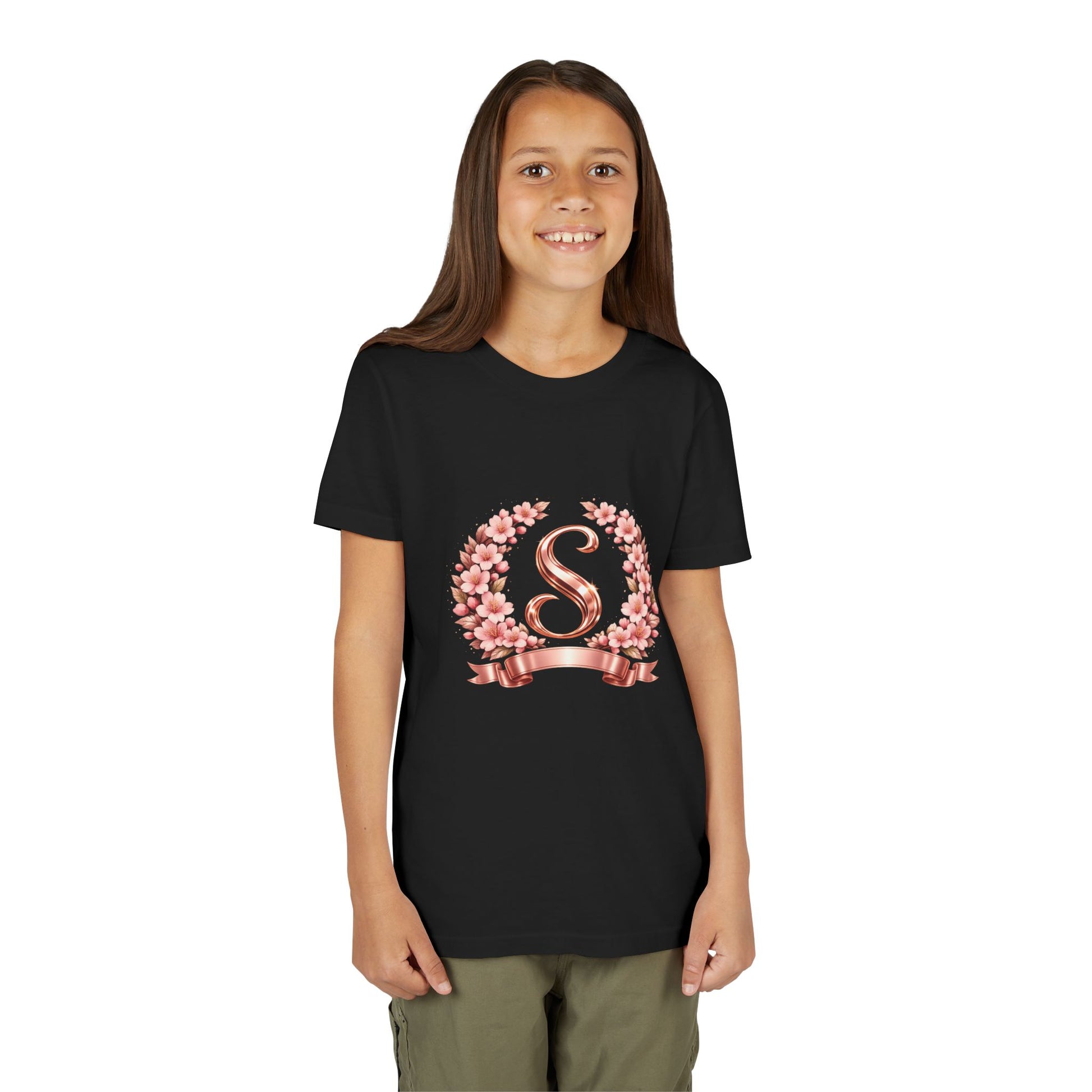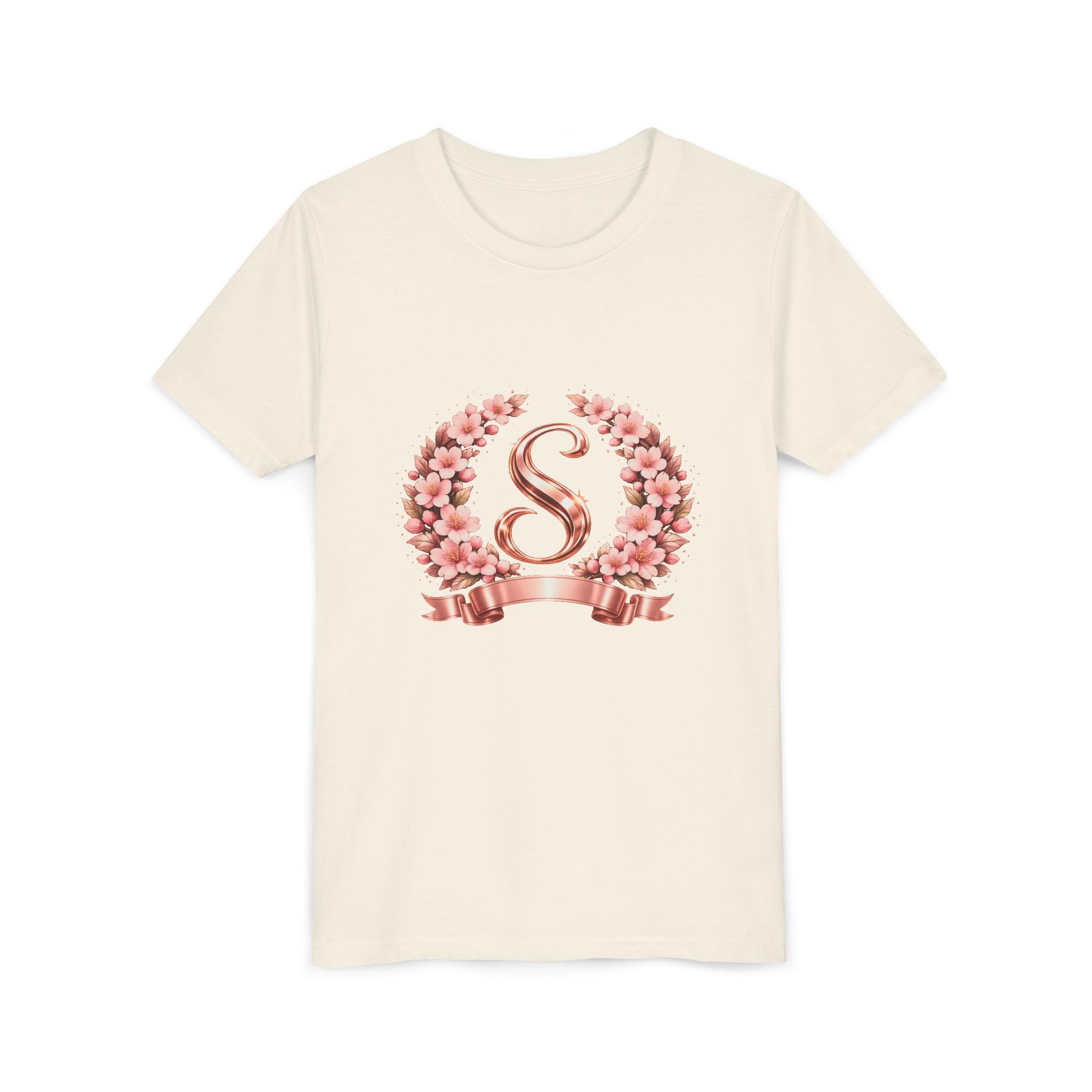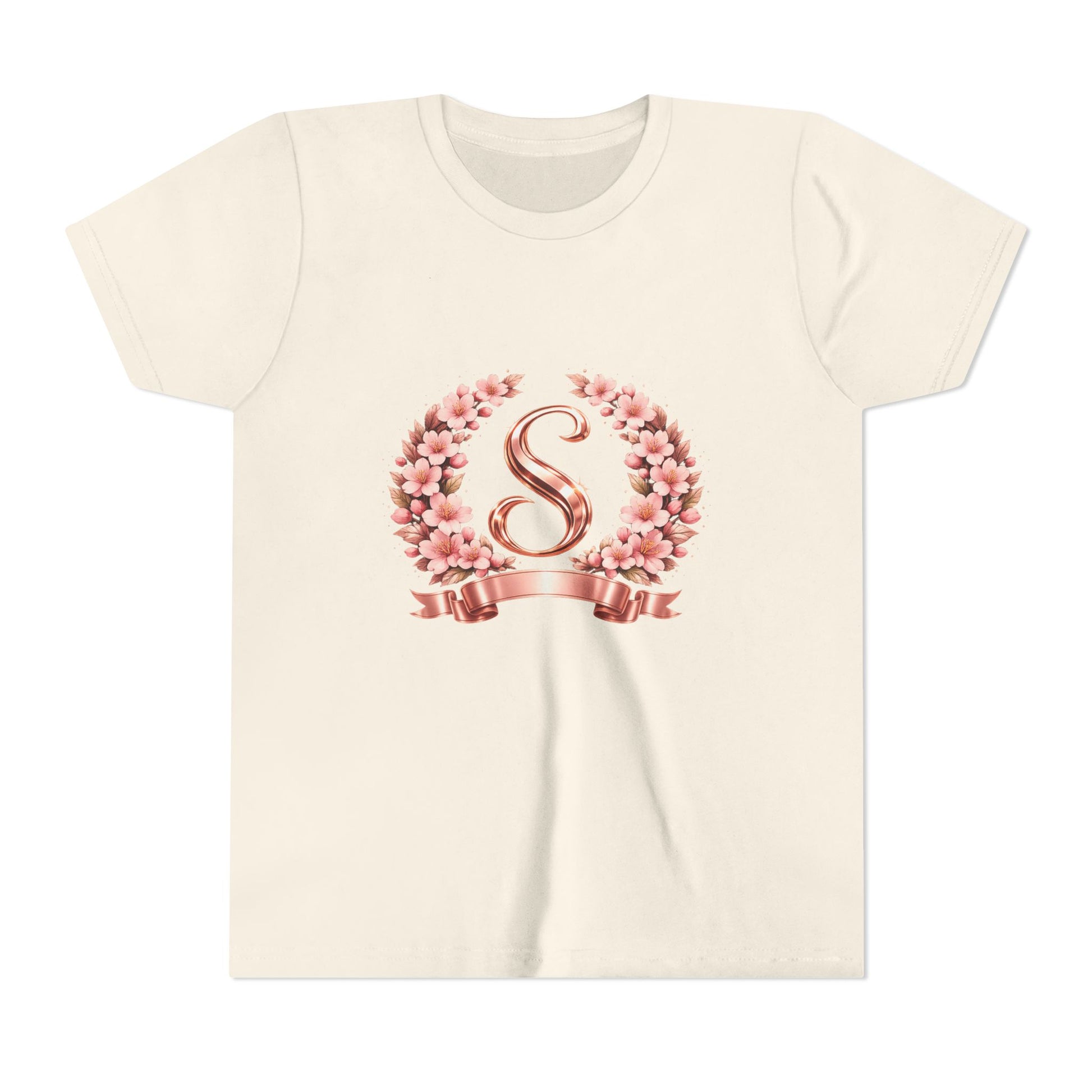 Youth Tee — Rose Gold Floral Monogram 'S' Shirt