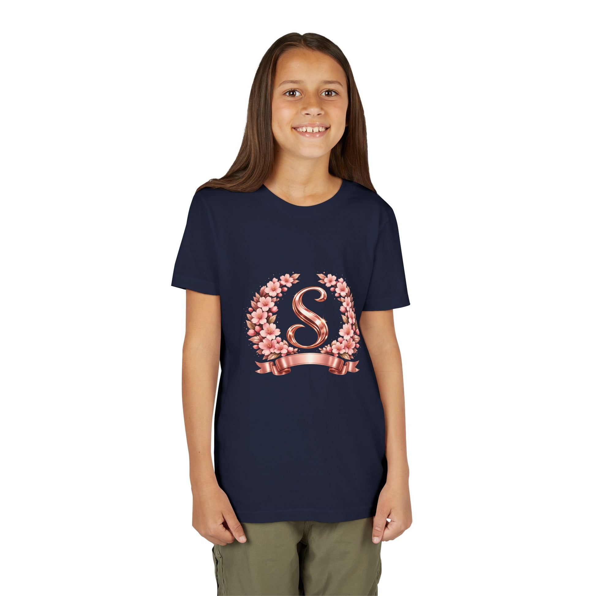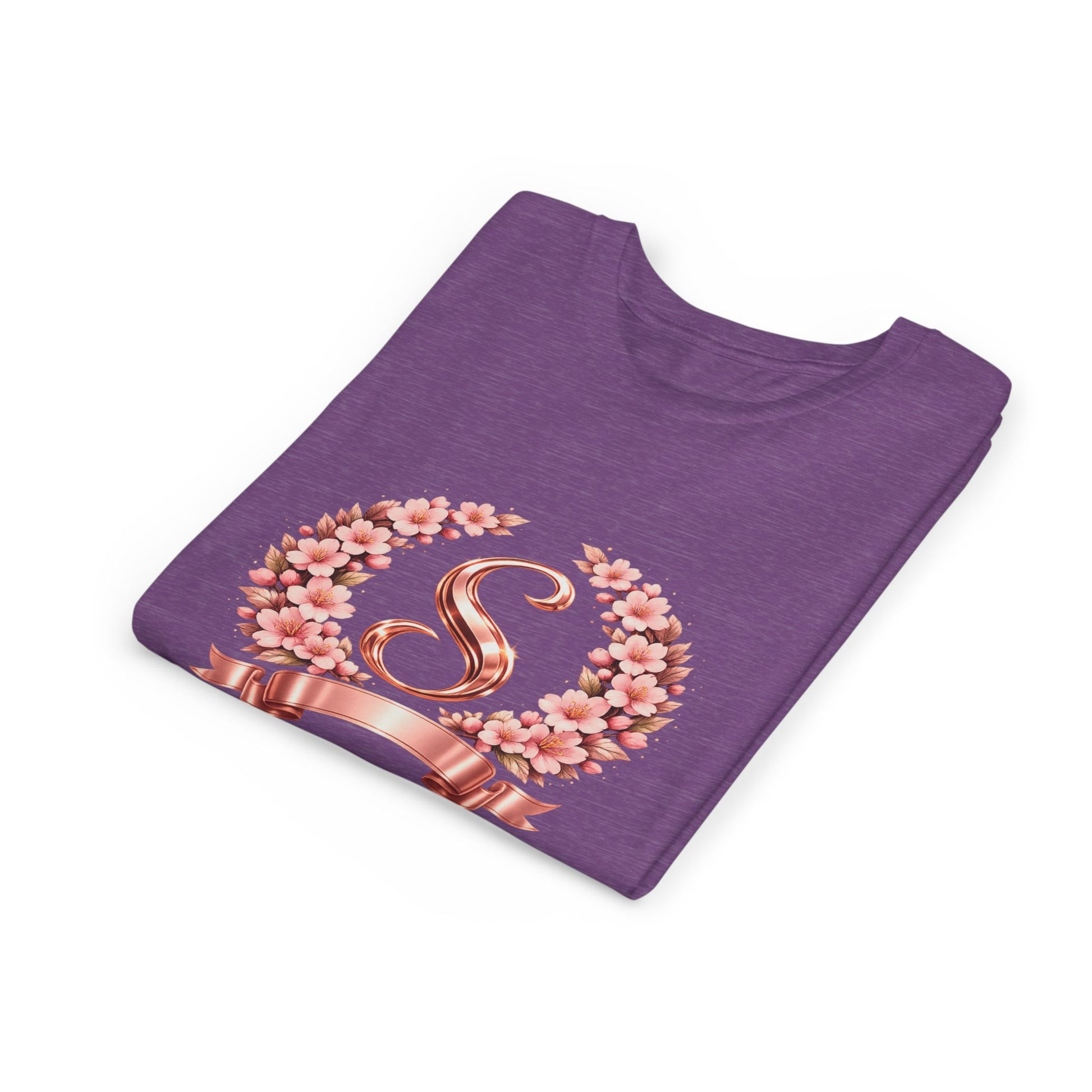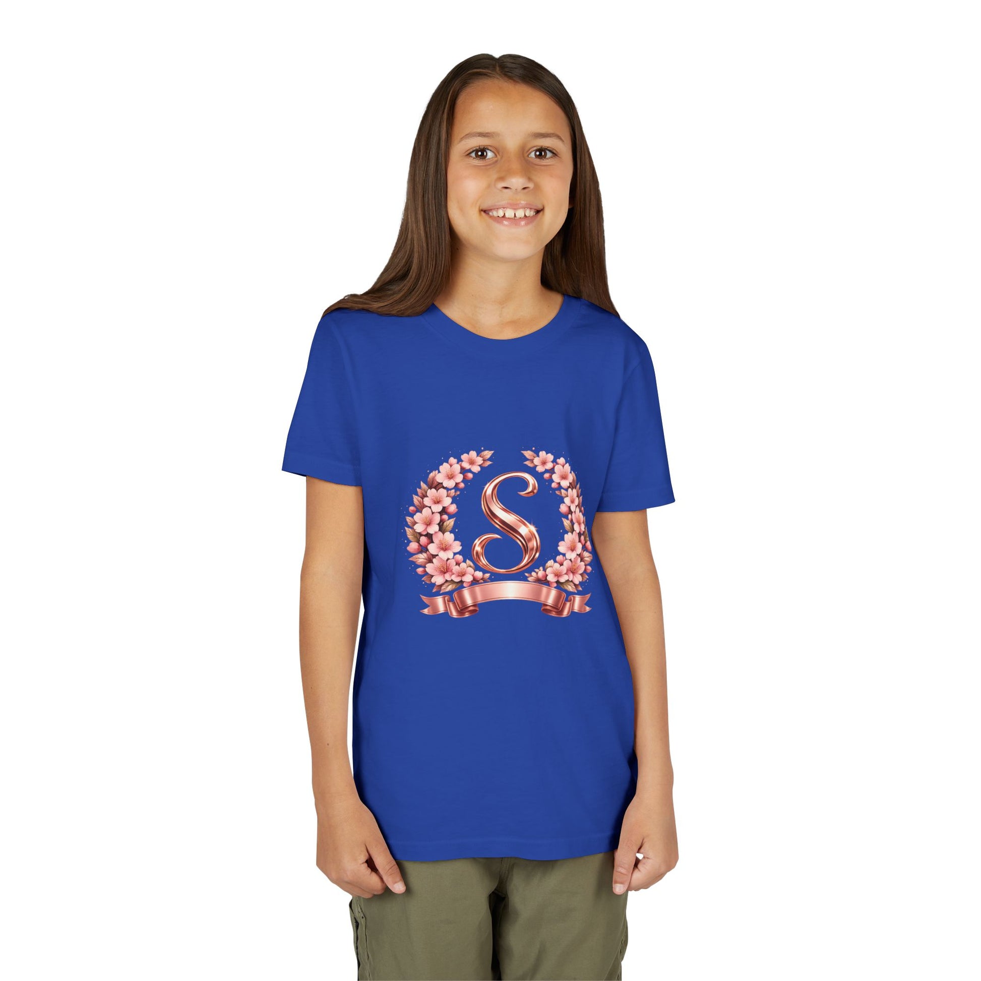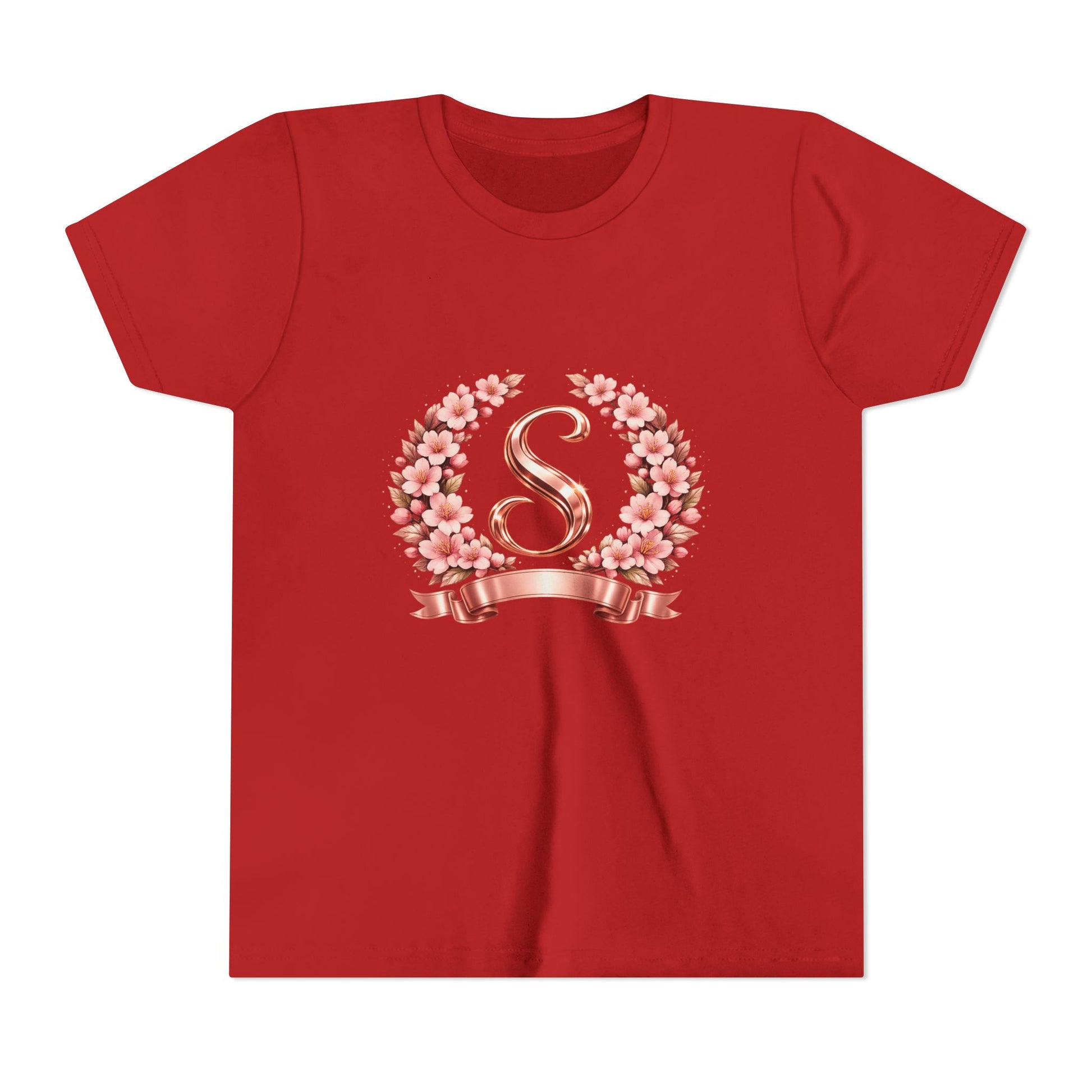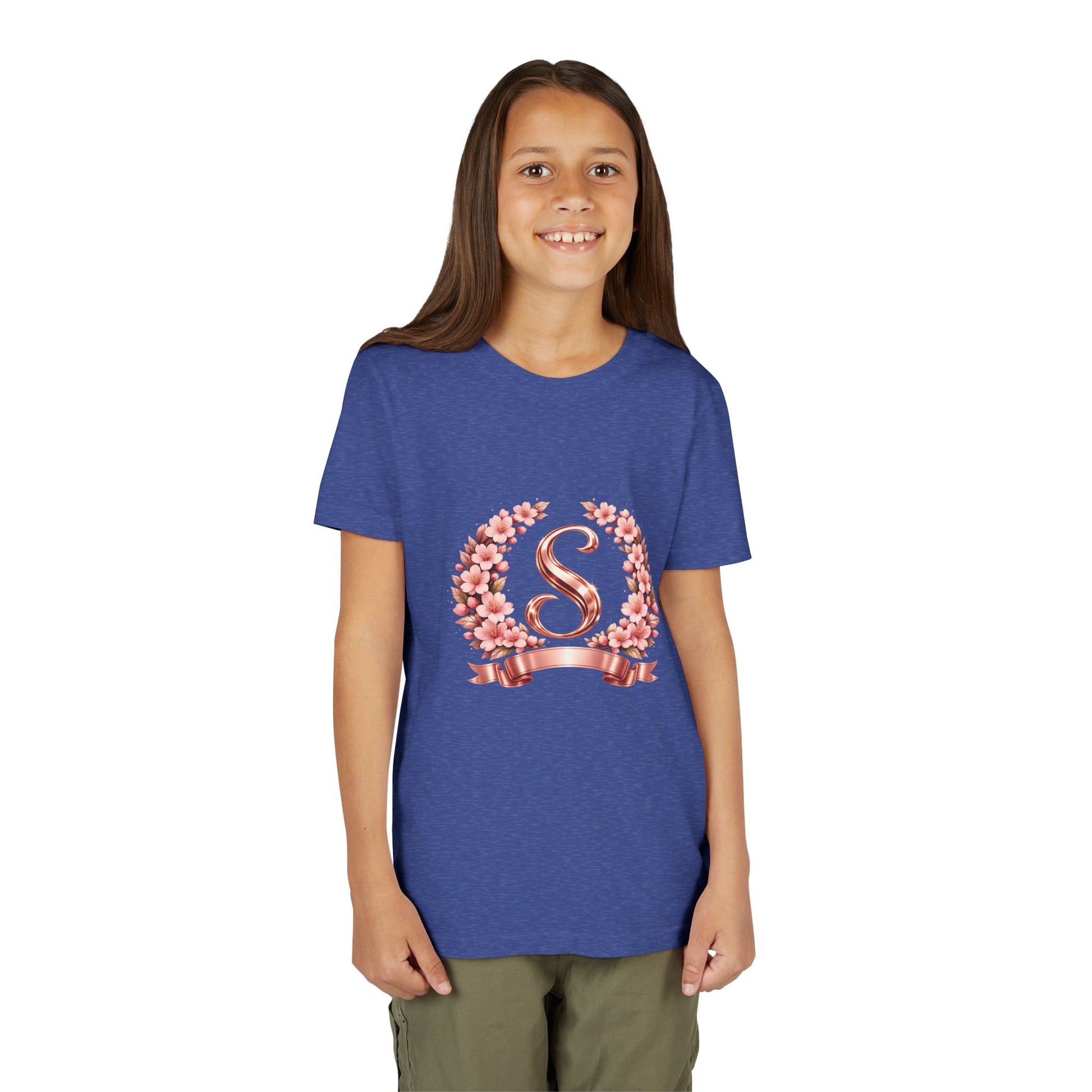 Youth Tee — Rose Gold Floral Monogram 'S' Shirt